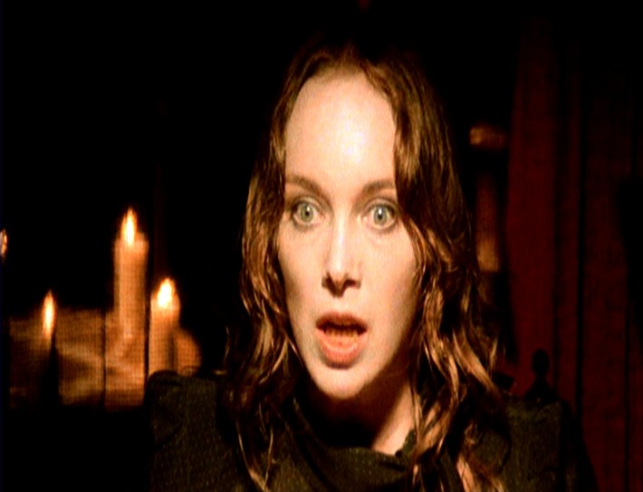 [Catriona] : C'est super culte et je dirais même que, je l'ai regardé il n'y a pas longtemps, et je trouve qu'elle est belle, elle n'est pas que gore, même pas d'ailleurs, avec les roses, et les ongles, ça marche très bien, on y croit, moi, ça c'était plutôt rigolo puisque j'avais des faux ongles avec du sang derrière, donc ça c'était un gag plutôt qu'autre chose, mais je trouve qu'elle est… elle ne me fait pas peur cette séquence maintenant, c'est de l'avoir vécue qui était difficile, et c'était difficile en studio aussi, parce qu'on a passé beaucoup de temps sur cette séquence, il y a eu toute la partie où on me filme de côté, c'était en studio, le cimetière, c'était à New York, et il fallait être très précis, et y'avait une ambiance incroyable, c'est pas seulement " on y croit " mais il y a une certaine… je ne sais pas si je peux dire " poésie "…
