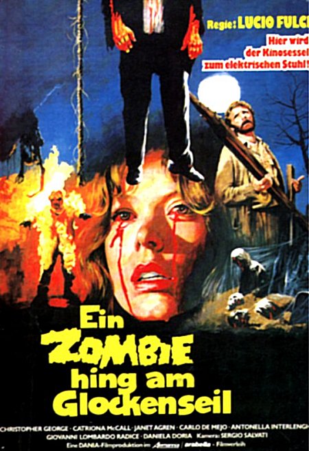 [Catriona] : J'ai été amenée à rencontrer Lucio parce que j'avais un agent en Angleterre, et un agent italien, qui était un personnage sorti des films de Fulci quelque part, extrêmement décadent, opulent, avec un bureau absolument incroyable à Rome, espèce de palais doré, et il avait contacté mon agent anglais en disant que Lucio Fulci, que mon agent ne connaissait pas bien sûr, cherchait une anglaise blonde aux yeux bleus de tel âge, style un peu hitchcockienne, pour faire ce film, et donc mon agent m'avait téléphonée en me disant " écoute, je sais pas trop de quoi il s'agit, un film un peu spécial mais si ça t'amuse, ils veulent te rencontrer et te payer le billet pour aller à Rome ", donc j'y suis allée, en tant que bonne professionnelle, je ne refusais pas, et puis je ne savais pas de quoi il s'agissait vraiment, un film qui faisait peur, c'est tout, et donc, je me souviens que le rendez-vous était très décadent, on était dans cet espèce de palais doré, avec ce personnage très bizarre de l'agent italien qui avait un strabisme très prononcé, ça faisait un personnage très bizarre, et Lucio, qui était sur son 31 ce jour là, qui ne lui ressemblait pas trop, espèce de costume à la Hitchcock, avec pipe et tout, et moi, qui était sur mon 31, avec un très beau manteau, escarpins et tout ça, donc c'était un peu hollywoodien, et il m'avait fait lire le scénario la veille pour que je sache au moins ce qui m'attendait, il a dit " oui " tout de suite, et après, j'ai commencé à m'inquiéter un peu, j'étais au pied du mur, et j'ai téléphoné dès que je suis rentrée à Paris, j'habitais Paris à l'époque, j'ai téléphoné à mon agent et je lui ai demandé ce que je faisais, alors j'avais bien décrypté dans le scénario que les effets, parce que les scénarios n'étaient pas si bien écrits que ça quand même, il manquait beaucoup de chose, et moi je n'avais jamais lu de scénario comme ça, mais je voyais bien qu'en tant que personnage, il n'y avait pas beaucoup de développement de personnage, ça semblait être des espèces de transitions pour mettre un effet spécial avec un autre effet spécial, et que j'avais quand même décrypté que les effets spéciaux ne me concernaient pas trop, c'était pas moi dont l'œil sortait, ou qu'un pic perçait la tête, moi je n'avais qu'à combattre le mal tant bien que mal, et m'échappait en courant, et je pense qu'inconsciemment, ce côté là me plaisait bien, parce que j'aime bien les défis, et déjà Lucio c'était un défi, et certaines séquences, comme avec le cercueil, étaient des défis avec moi-même et je me demandais si j'allais y arriver, et pouvoir survivre avec une certaine dignité avec ce genre de films, ça aussi c'était sûrement un défi, mais c'était inconscient tout ça à l'époque.